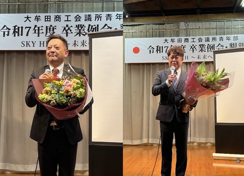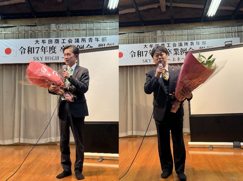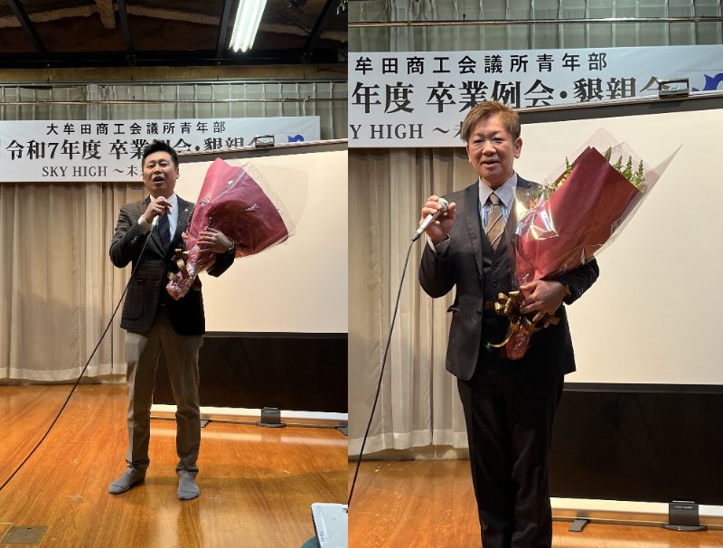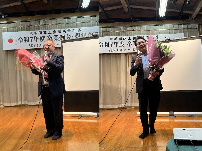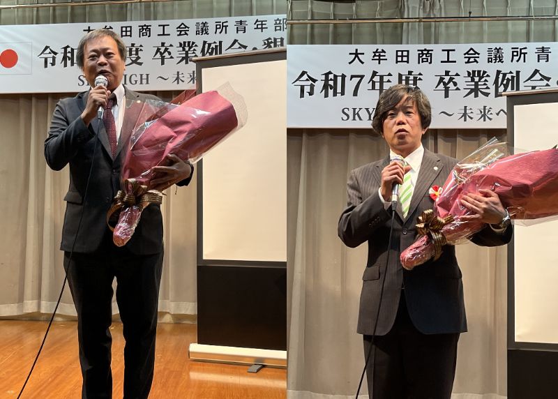 式典では、卒業会員一人ひとりのこれまでの歩みに想いを馳せながら、心温まる祝辞が贈られました。懇親会では、卒業会員に縁の深い現役会員から心温まるメッセージと花束が贈呈され、笑顔と笑い声があふれるひとときとなりました。終始和やかで明るく、晴れ晴れと前向きな気持ちになれる卒業例会でした。