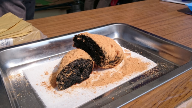 油で揚げたことによる香ばしさと,きな粉自体の香ばしさが相まって,完成した石炭あげパンは,正に絶品でした。